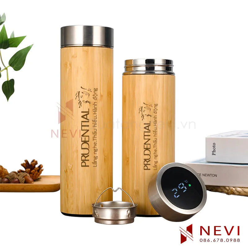 - Binh giữ nhiệt vỏ tre hiển thị nhiệt độ thông minh