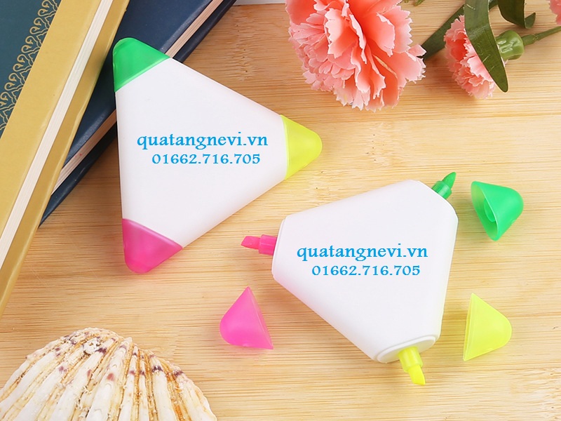Cấu tạo tiện lợi 3 in 1,chúng ta chỉ cần mang theo 1 hình tam giác này thay cho 3 chiếc bút khác màu. Bút nhớ dòng,bút highlight thường được in logo, thông điệp làm quà tặng cho học sinh,học viên,nhân viên văn phòng...