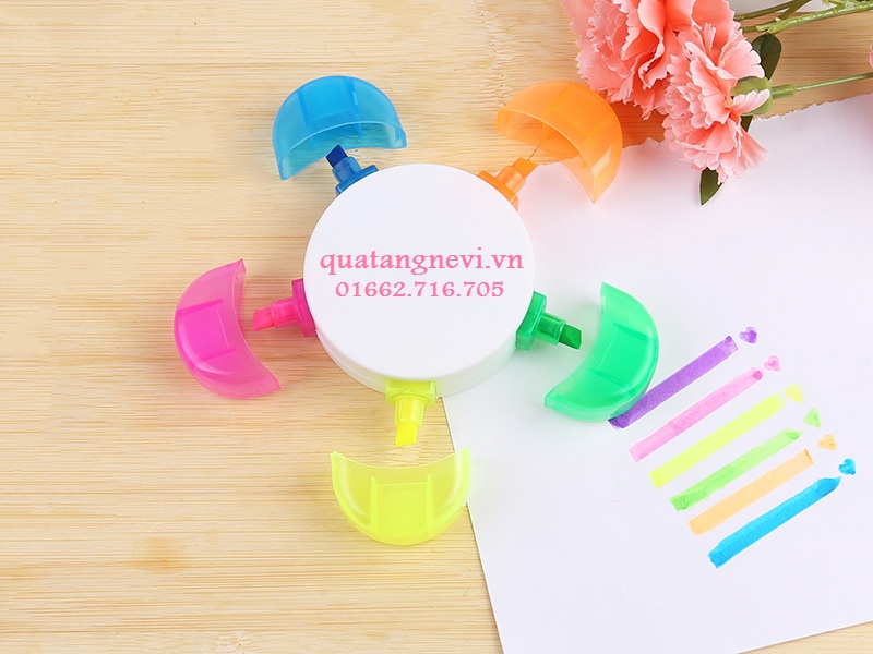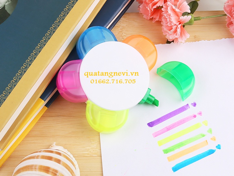 Mẫu bút highlight,bút nhớ dòng hình bông hoa 5 cánh .Bút highlight,bút nhớ dòng thường được in logo, thông tin, thông điệp để dành tặng cho học sinh,học viên,sinh viên, nhân viên văn phòng...